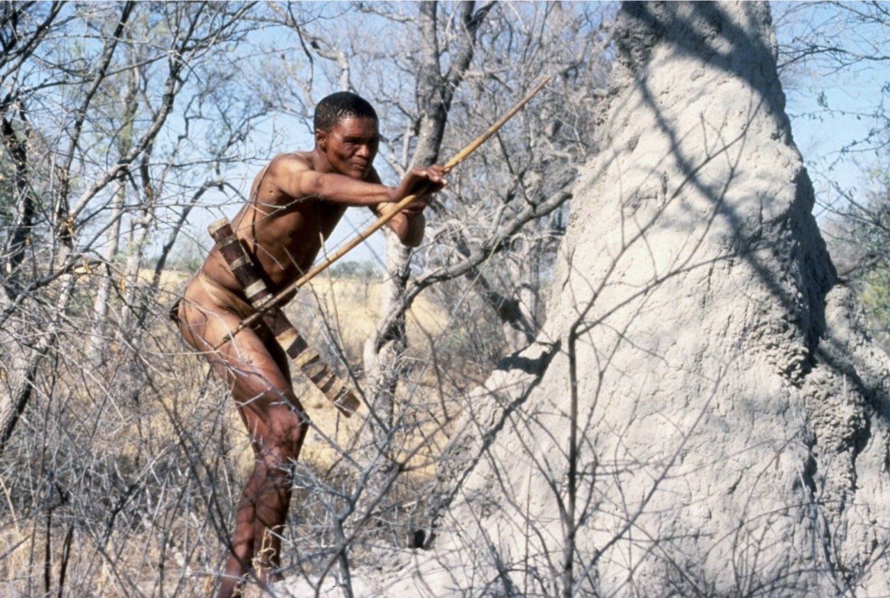 То есть, когда появились луки со стрелами, появились и отравленные стрелы, - а значит люди палеолита уже тогда были грозными охотниками. Но это охотничье оружие не разит наповал, а наносит небольшую ранку, через которую яд попадает в кровь. Животное убегает, но крошечный наконечник остается под кожей, продолжая выделять яд, а охотник идет за жертвой, - все, как показано в любимом фильме «Боги, наверное, сошли с ума».