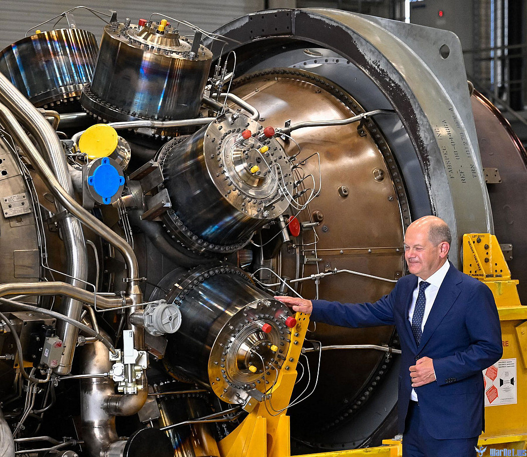 шольц проводит сеанс диагностики турбины на исправность))) клоун!