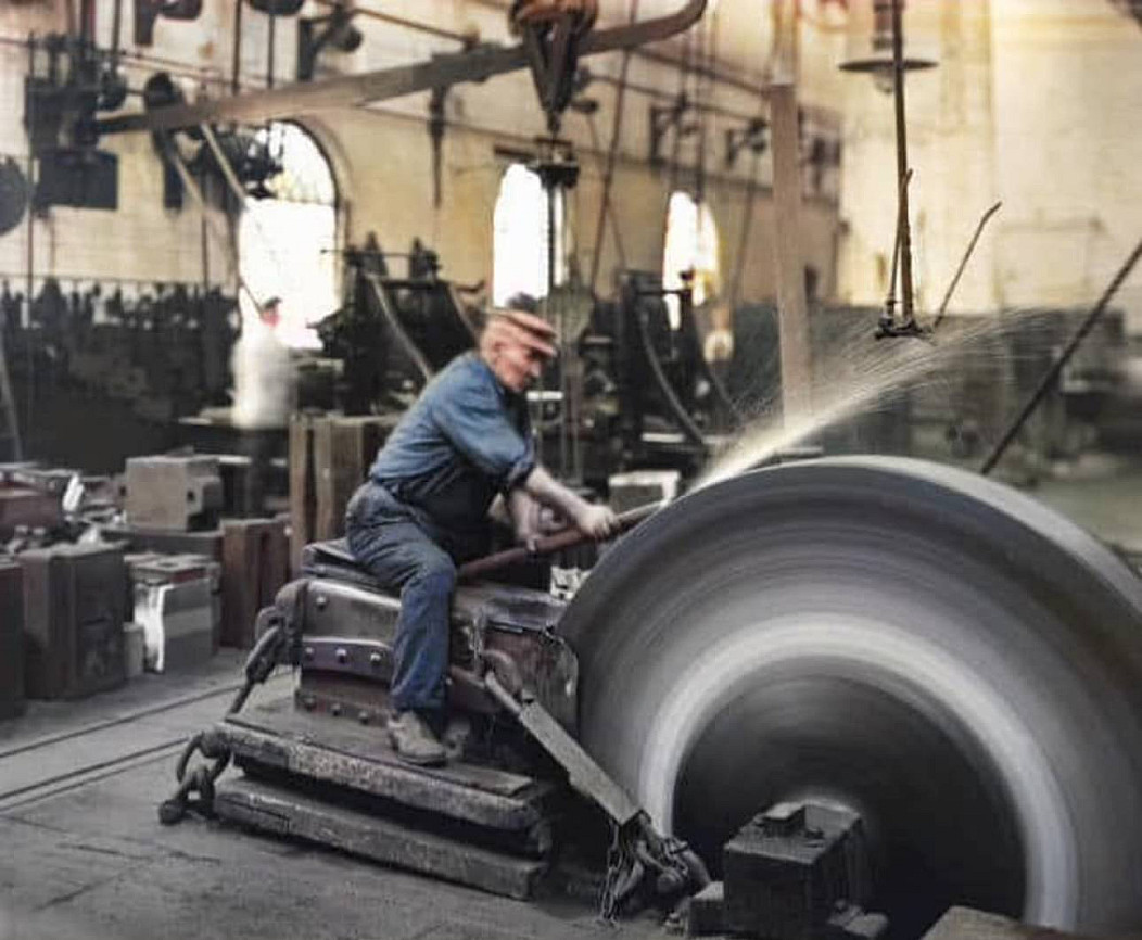 Чаловек с гигантским наждаком крут