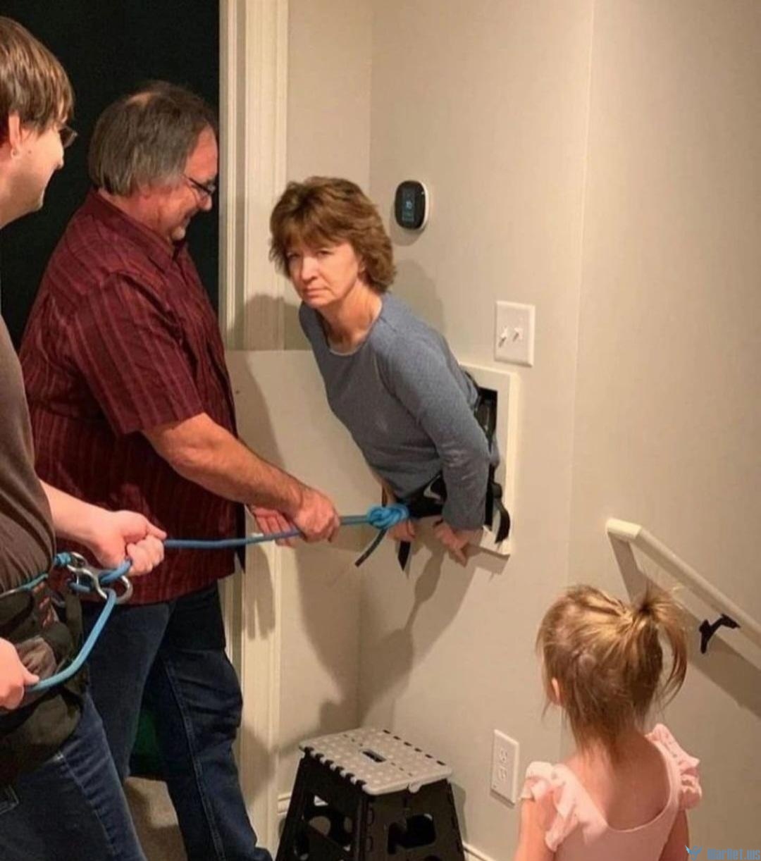 Застрявшая бабуся выглядит раздосадованной. Возможно, это была ее последняя надежда, но ее просто вытащили!