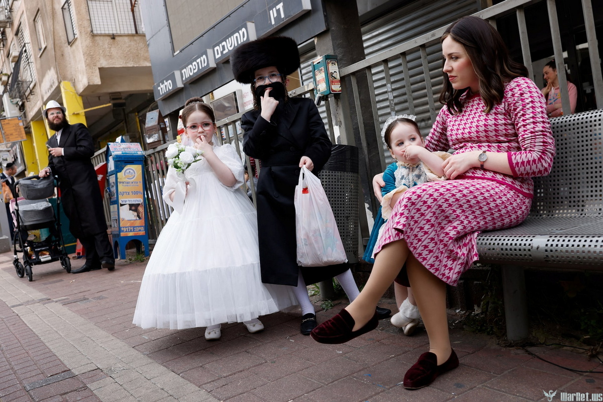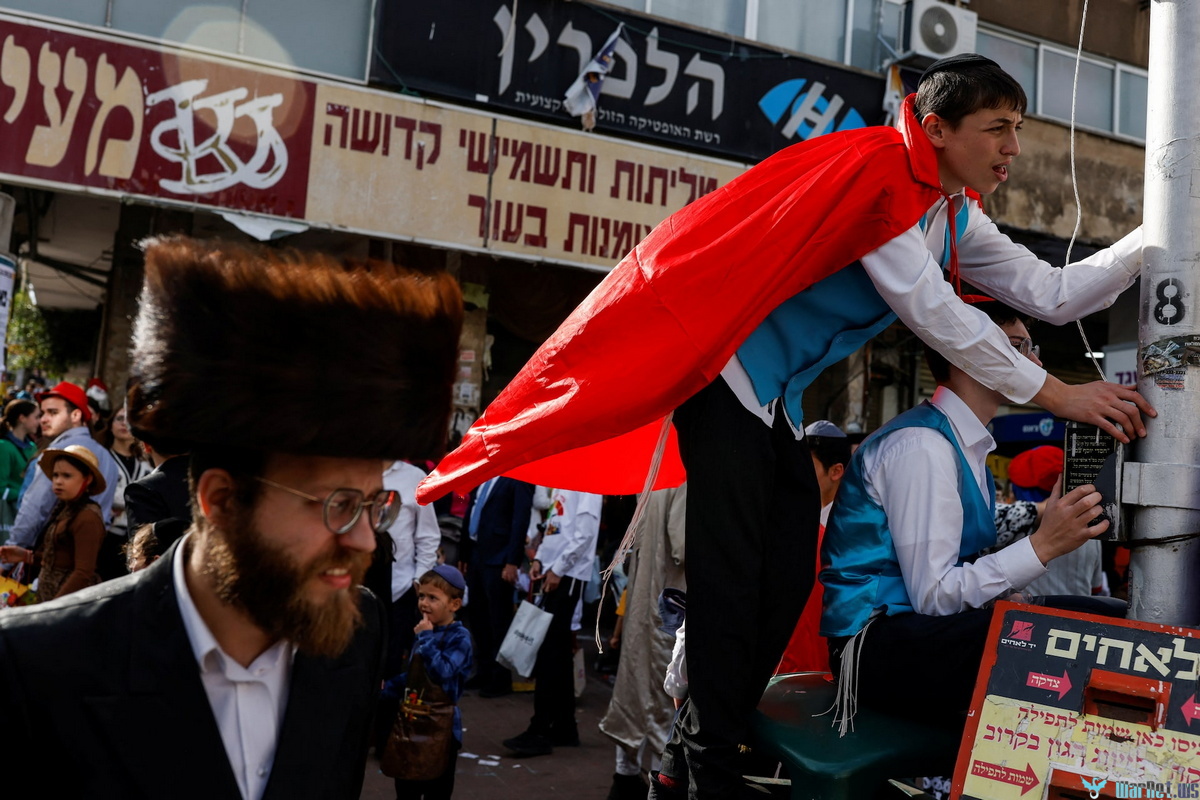 Тысячи людей выстроились на улицах города, чтобы принять участие в празднике Пурим, который знаменует победу евреев над тираном в древней Персии и отмечается яркими костюмами, выпивкой и вечеринками.