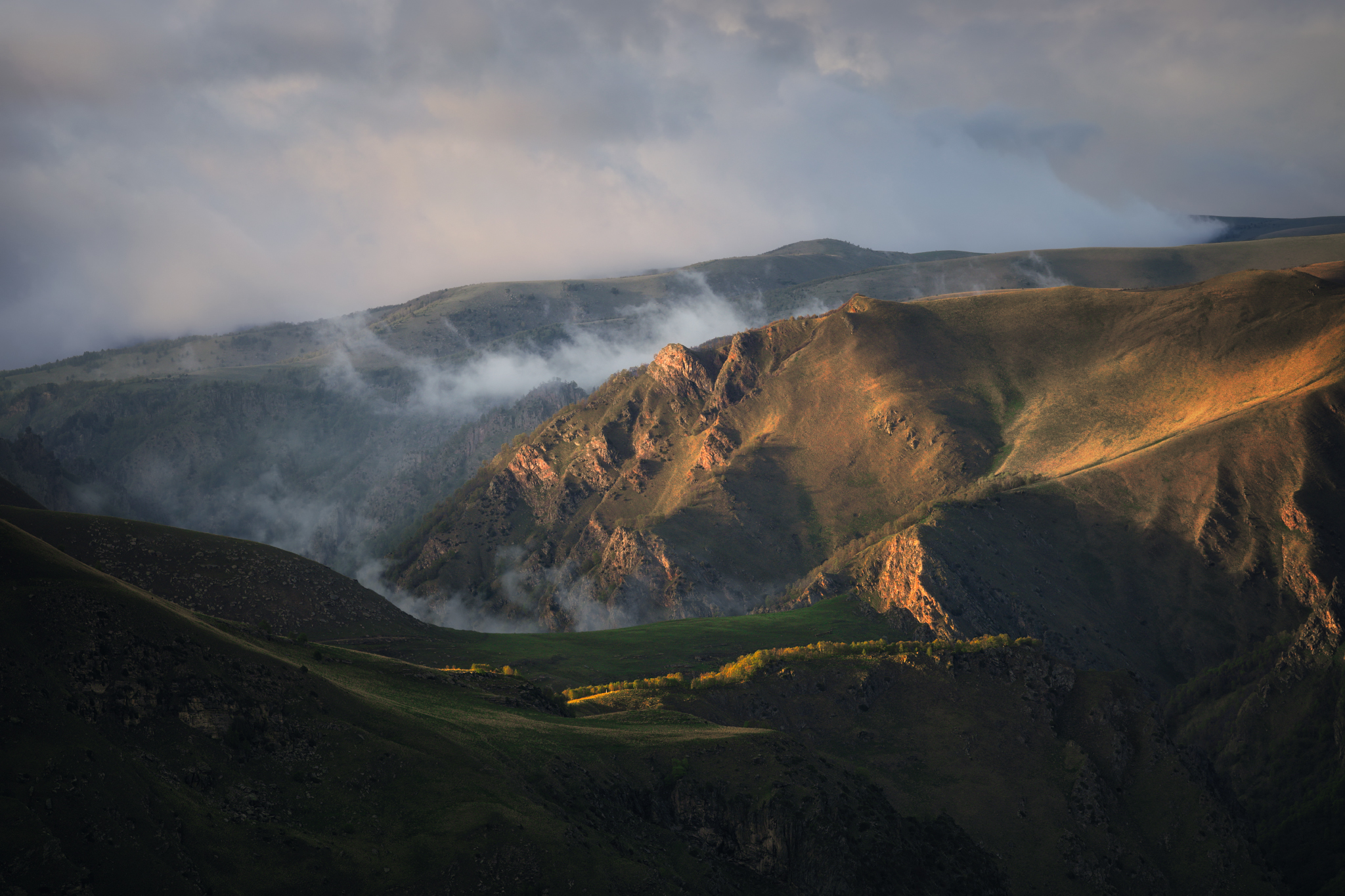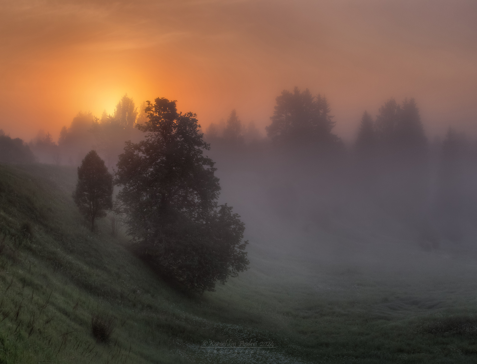 вот допустим последняя фотка. Утро, туман. Тишина. Еще прохладно и трава покрыта росой. На речке ягушки расквакались. Вдалеке слышен надтреснутый перезвон колокольчиков стада коров отправляющегося на заливные луга.