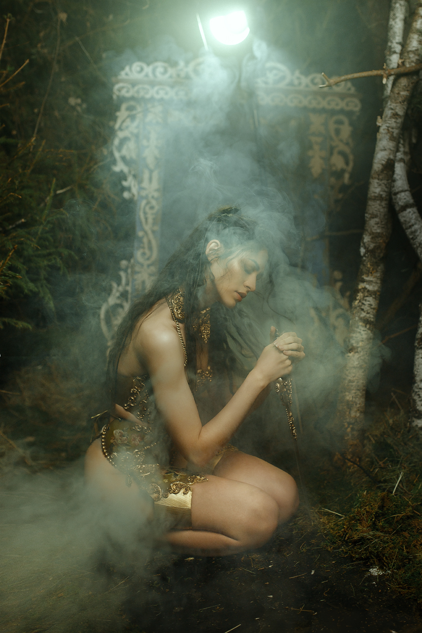 Дама с собачкой - интересный снимок. Жаль только что зеленый цвет убрали.