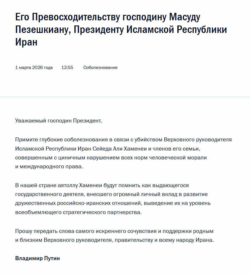 Serg777 🇺🇦 15ч51м 02 марта 2026, 10:41 Война,это ужасное зрелище. Не понимаю, почему росияне всегда радуются этому горю.