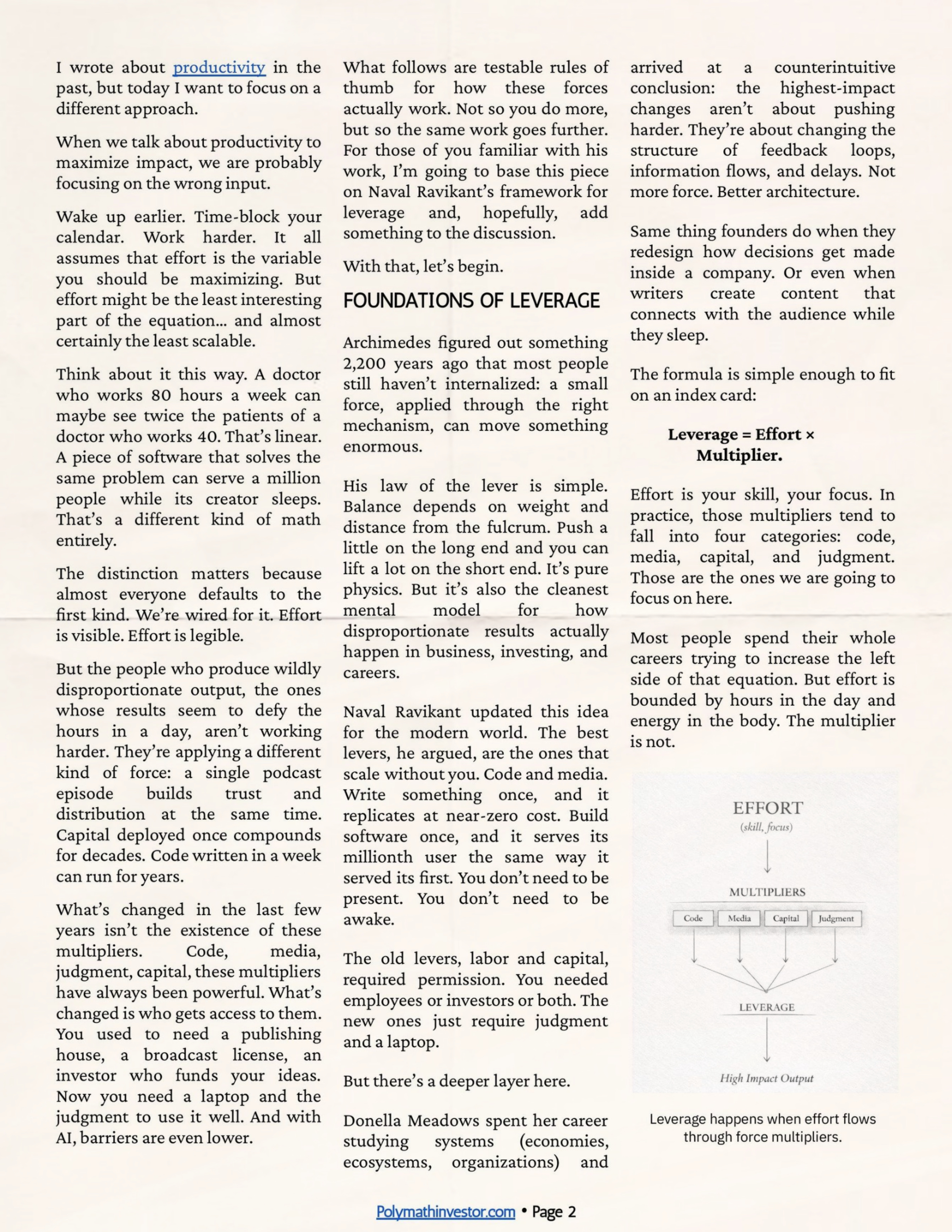 Leverage = Effort × Multiplier