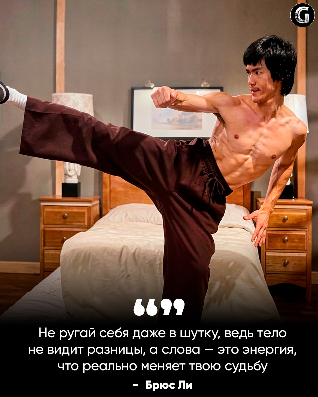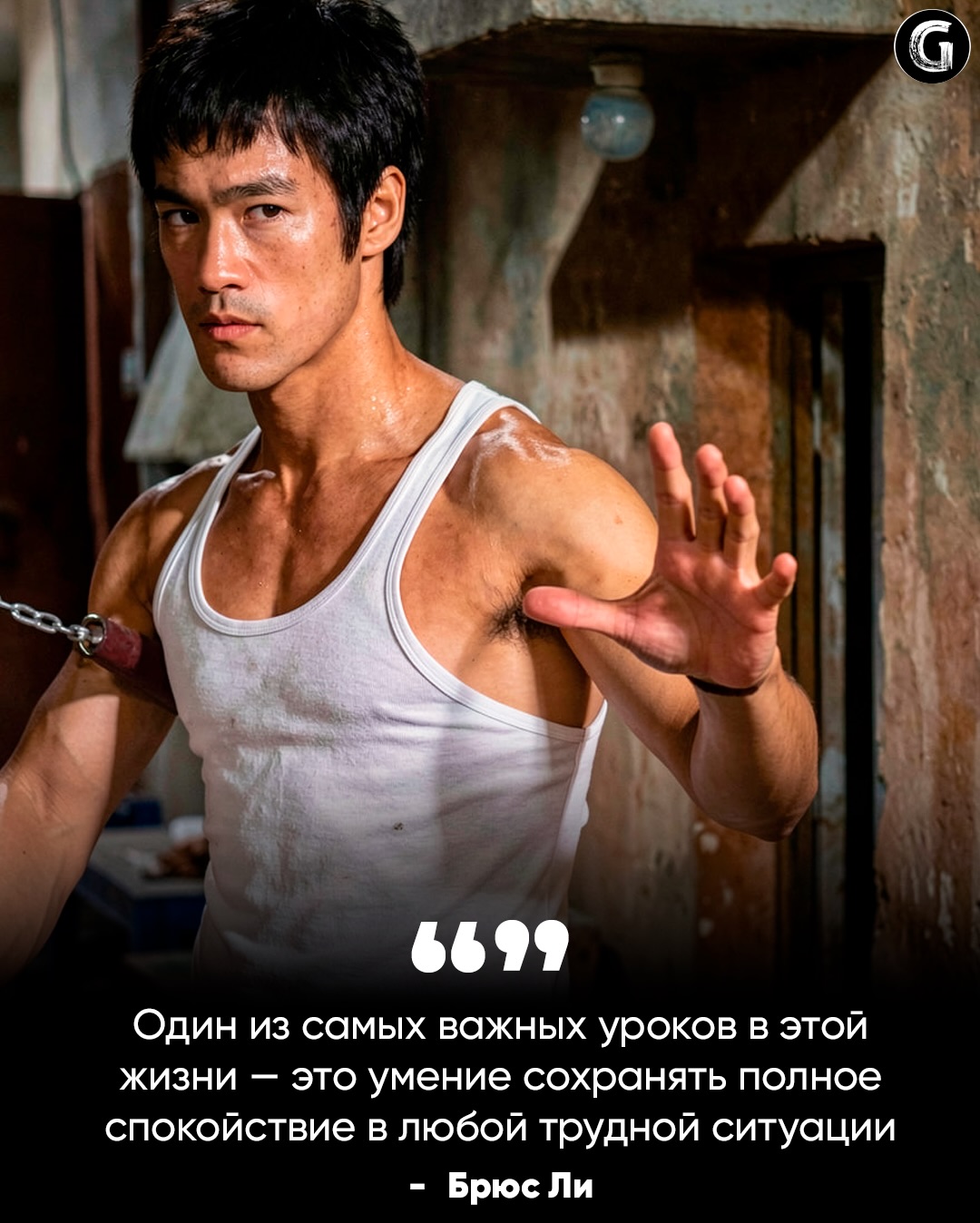 - «Один из самых важных уроков в этой жизни — это умение сохранять полное спокойствие…» — опять только мотивационные рилсы. Реальный Ли говорил про «будь водой», адаптивность и контроль, но не этой фразой.